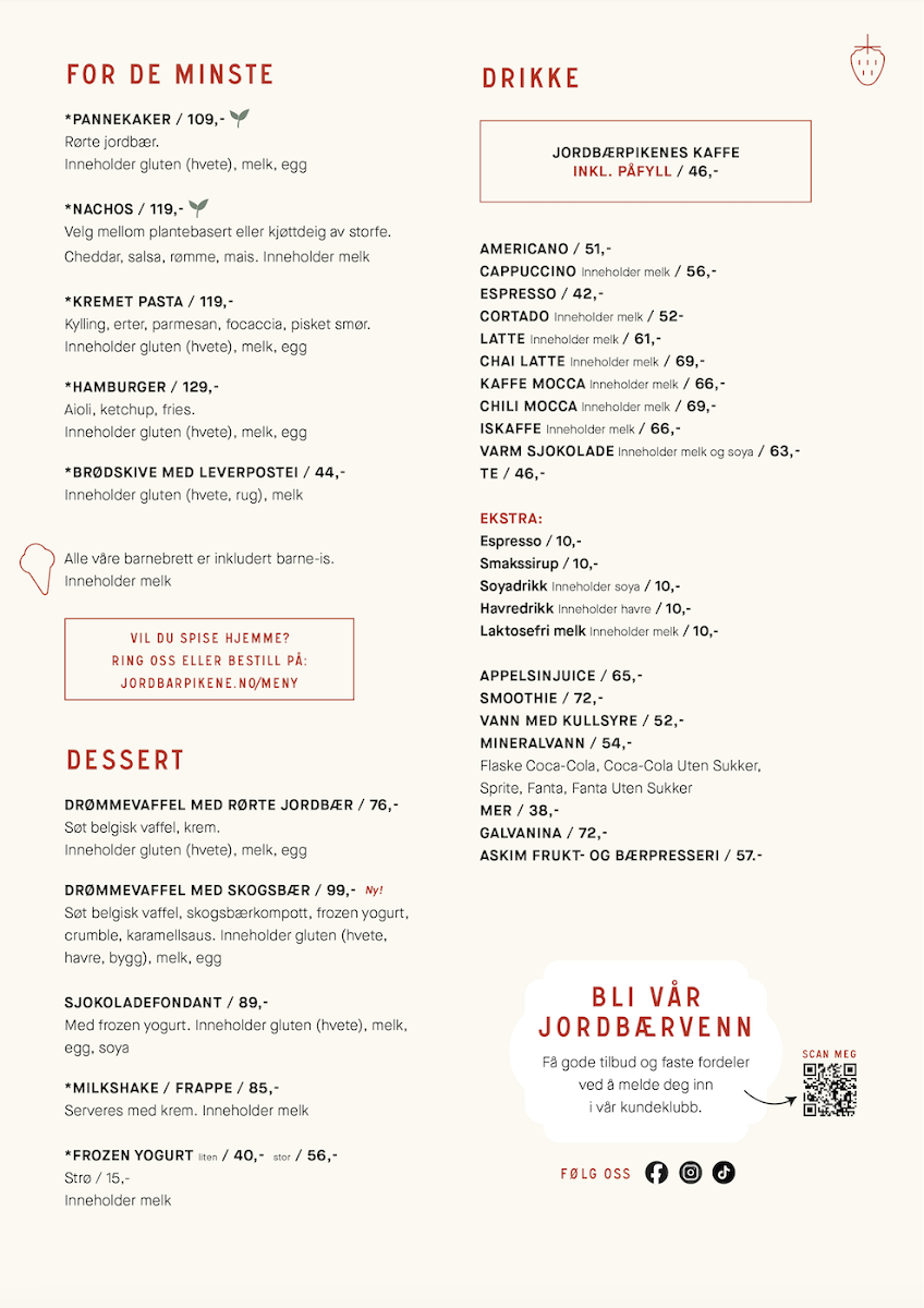 Step inside and be greeted by the inviting ambiance, accentuated by soft lighting and friendly smiles from the staff. The café is not just a place to grab a quick bite; it’s an experience that beckons you to sit back, relax, and indulge. Whether you’re stopping by for a hot beverage or a hearty meal, Jordbærpikene promises to deliver a delightful culinary journey that satisfies both the palate and the soul.